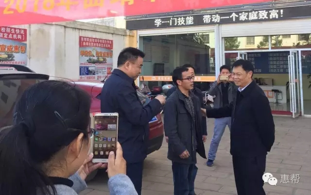 2016年11月23日,云南省人社厅邢副厅长,在曲靖市人社局彭局长、曲靖市人社局张副局长、曲靖市人社局就业中心陈主任、宣威市人社局吕局长、宣威市人社局赵副局长等相关领导人员的陪同下,莅临宣威市惠帮职业培训学校检查指导工作!