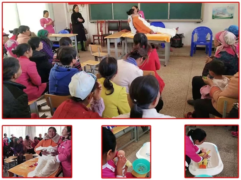 培训老师在认真的为大家演示家政服务员培训中的老人及婴幼儿照料。